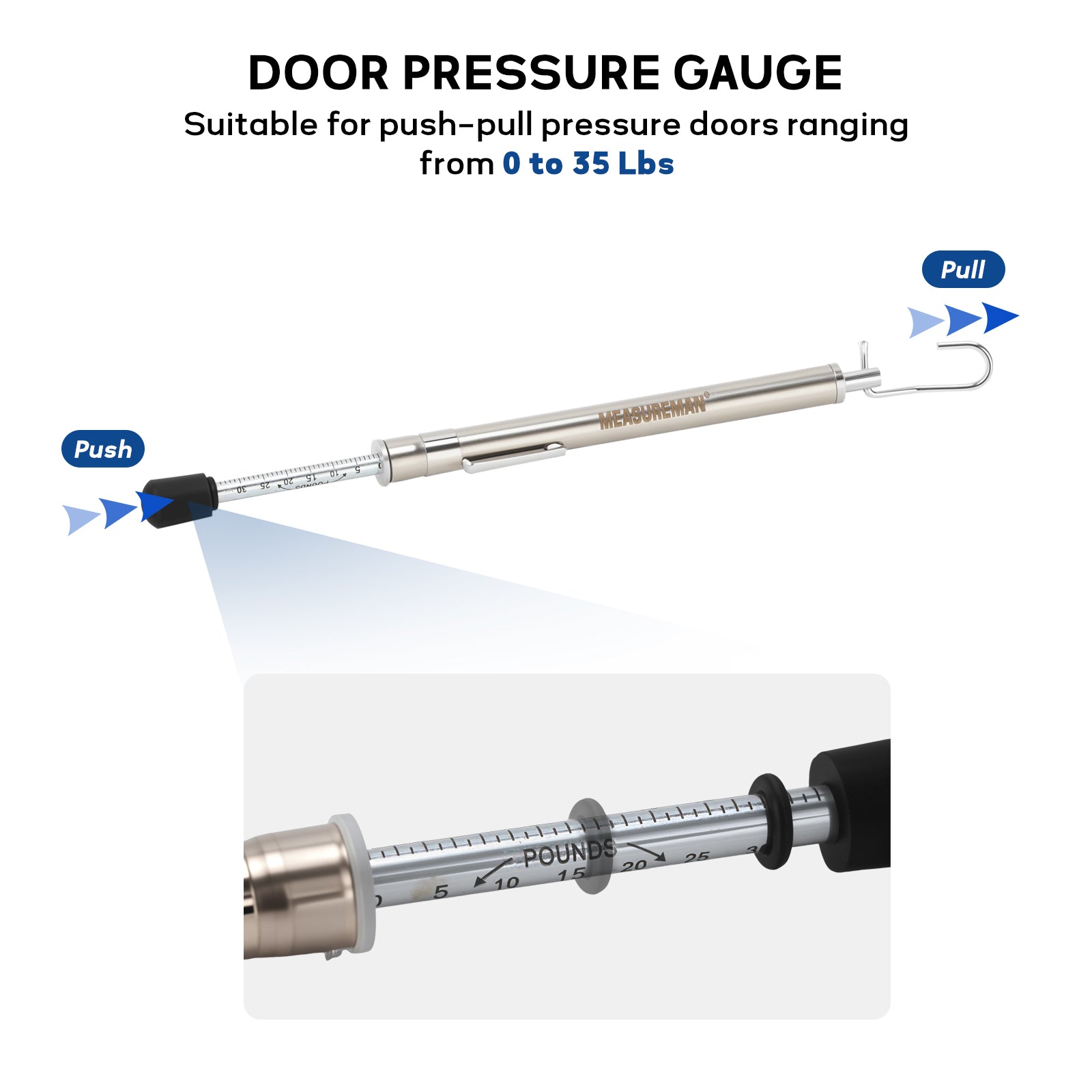 MEASUREMAN Dual-End Door Force Gauge, 0-35 Lbs/16kg Push Pull Tester, Stainless Steel Body with Hook, Door Closer & Lock Adjustment