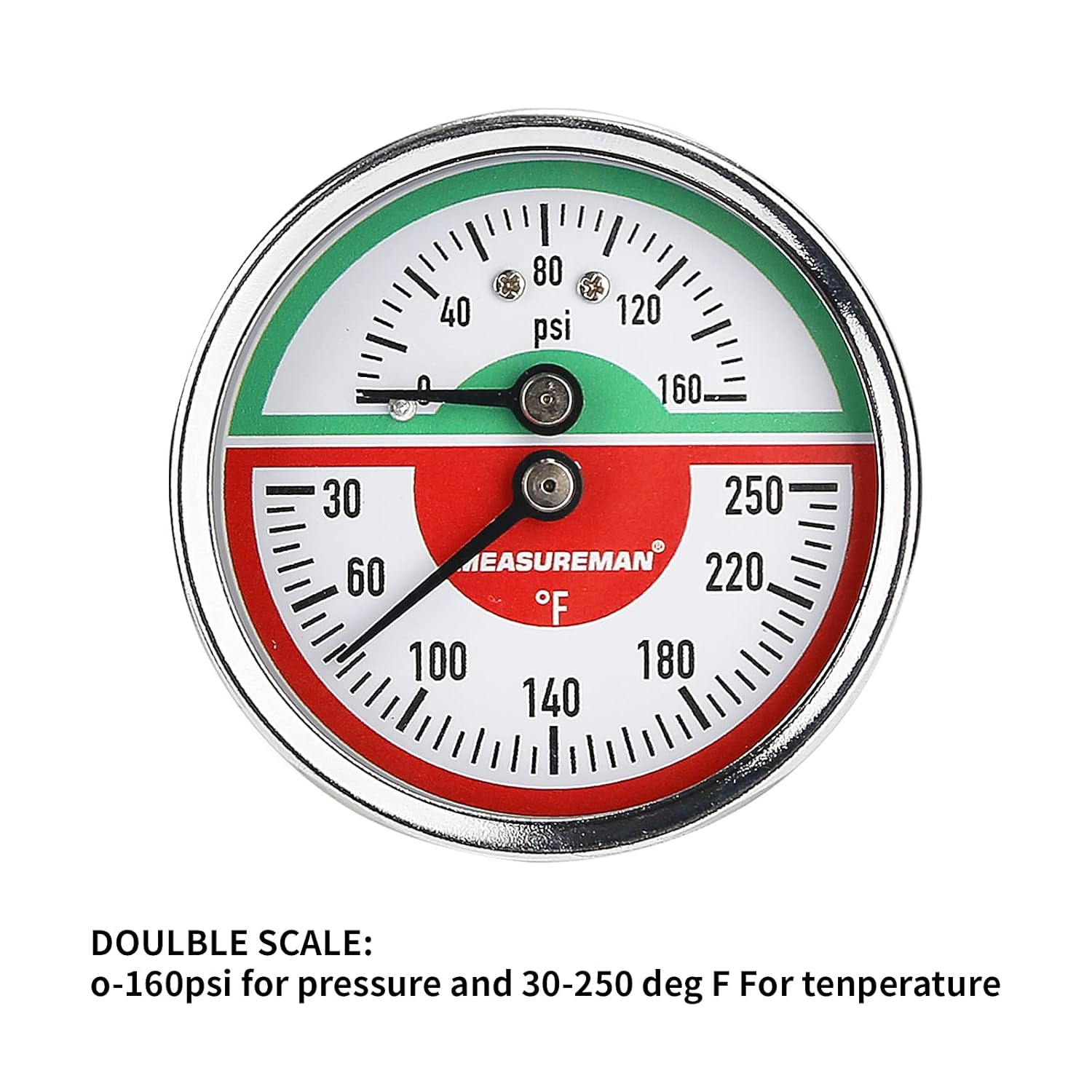 Range: 0-160psi/30-250 deg F double scale