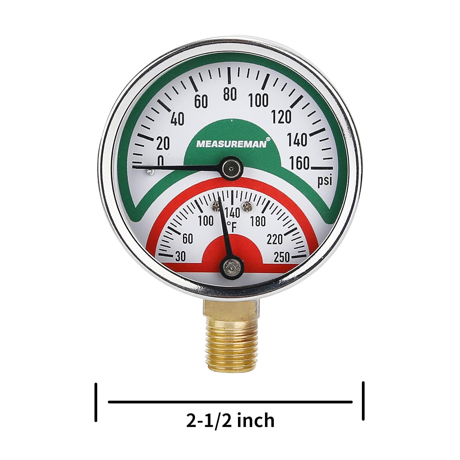 - Pressure range: 0-160psi/30-250 deg F, easy to read