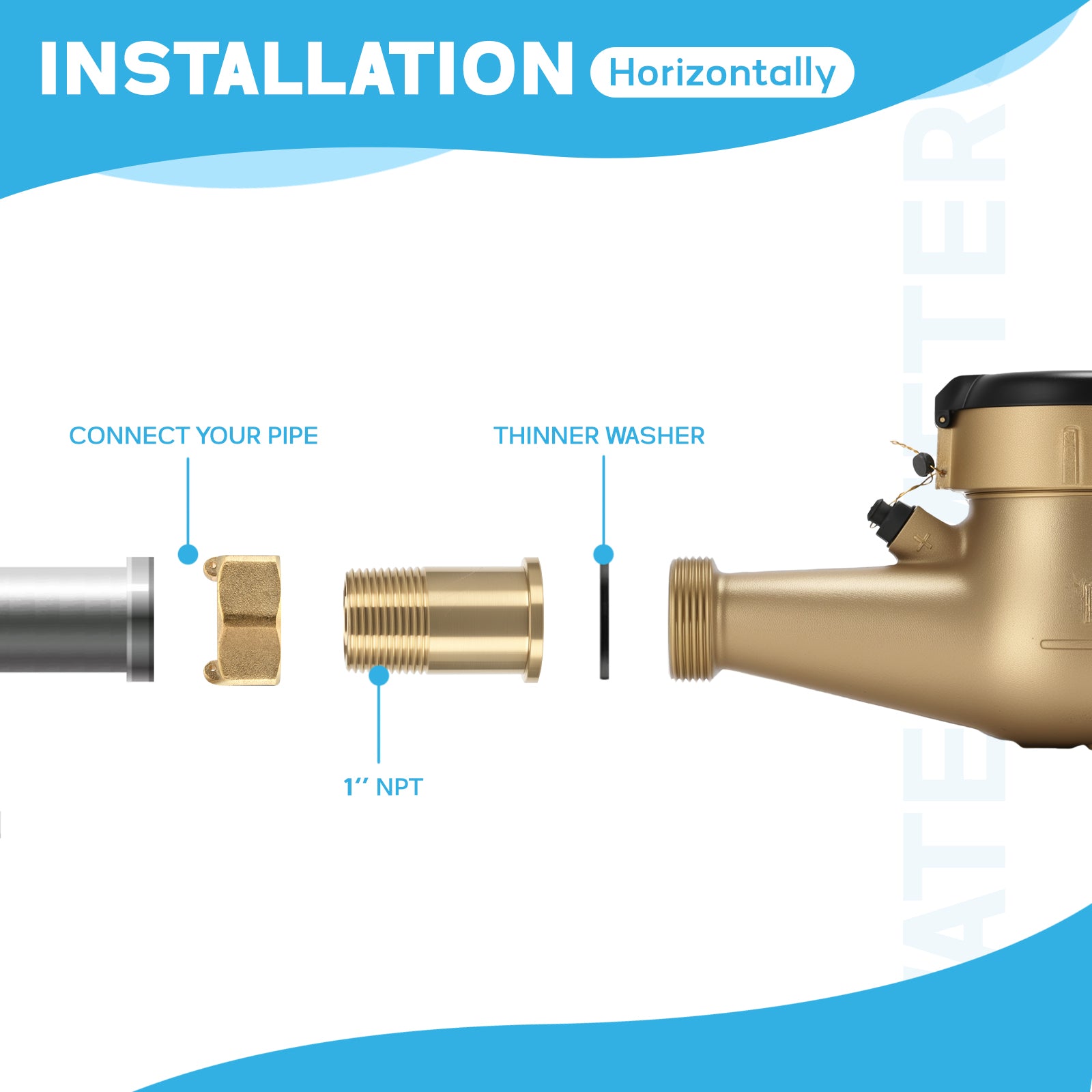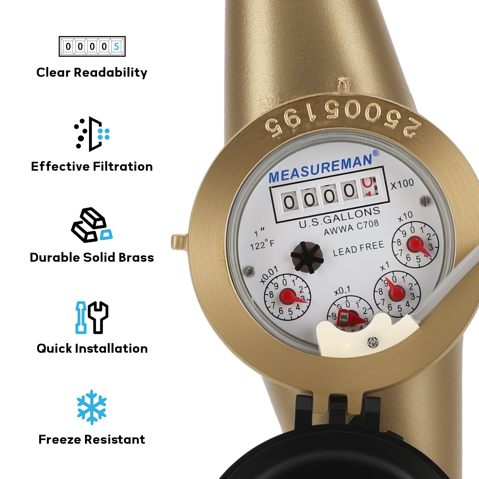 MEASUREMAN DN-25 1” Multi-Jet Pulsed Water Meter Brass Body High Accuracy Gallon Measurement for Garden