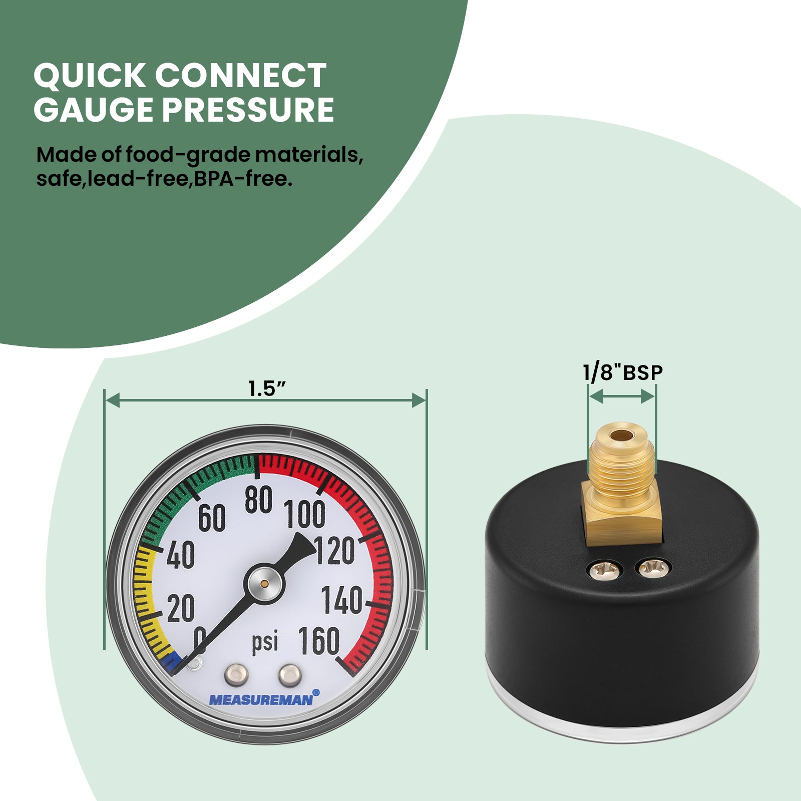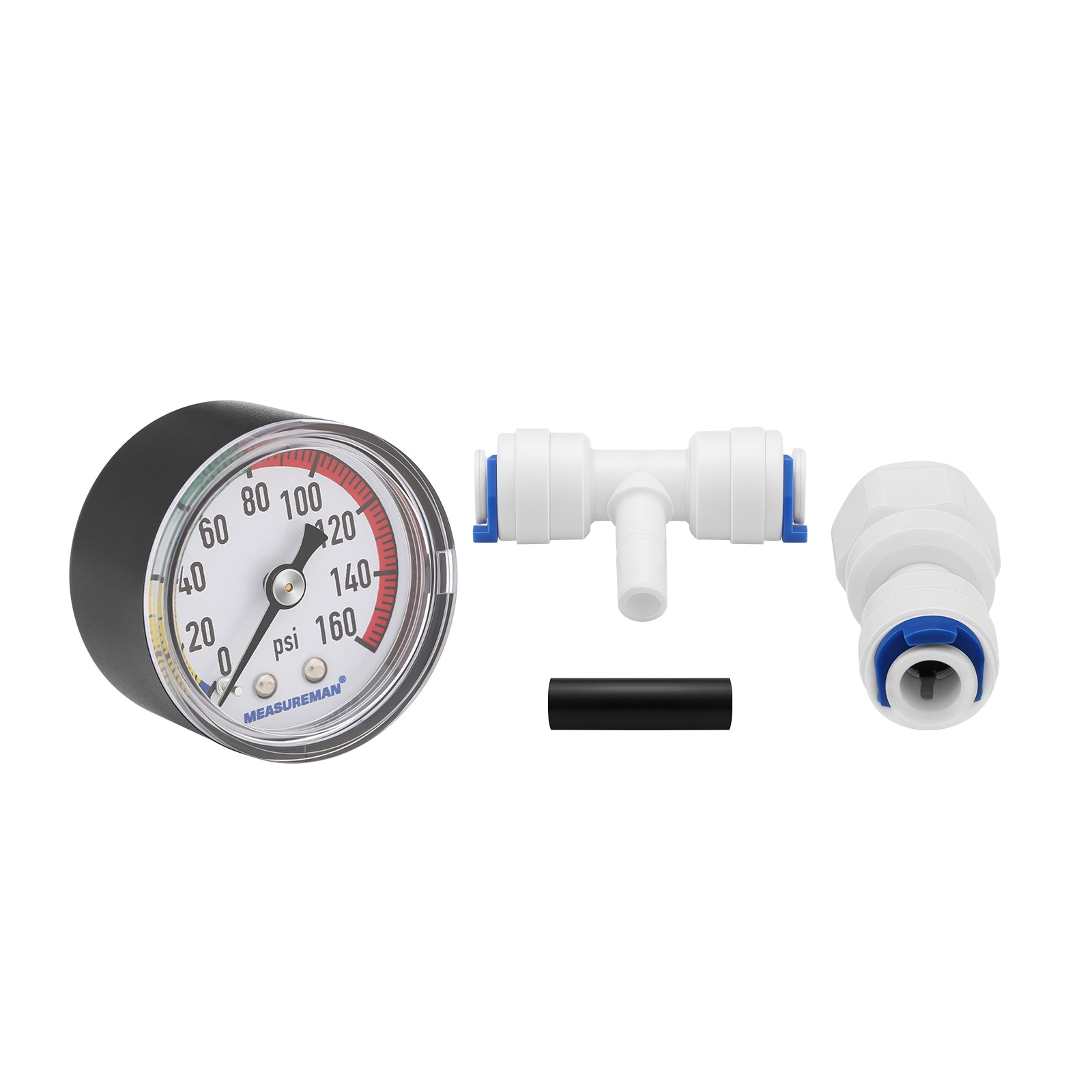 MEASUREMAN Water Pressure Gauge, Compatible with Reverse Osmosis (RO) Filter Systems, Water Filters 160 PSI with T-Valve Adapter – Home Water Pressure Tester Lead & BPA-Free, Easy Installation